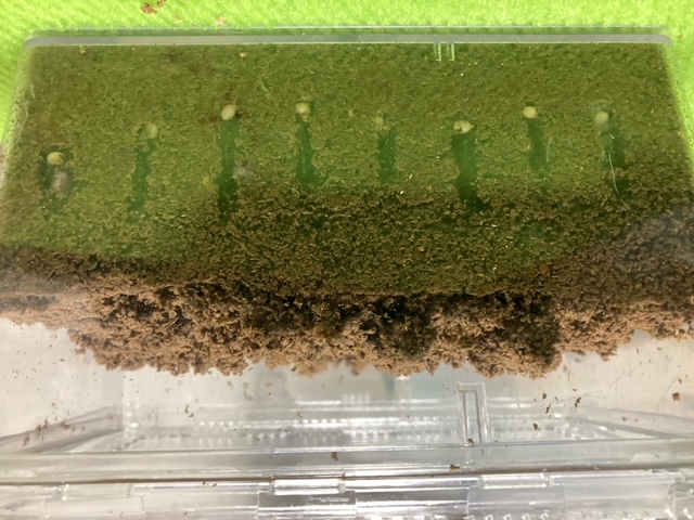 卵が40個ほど取れ、数匹は幼虫になりたてだったので有精卵です!