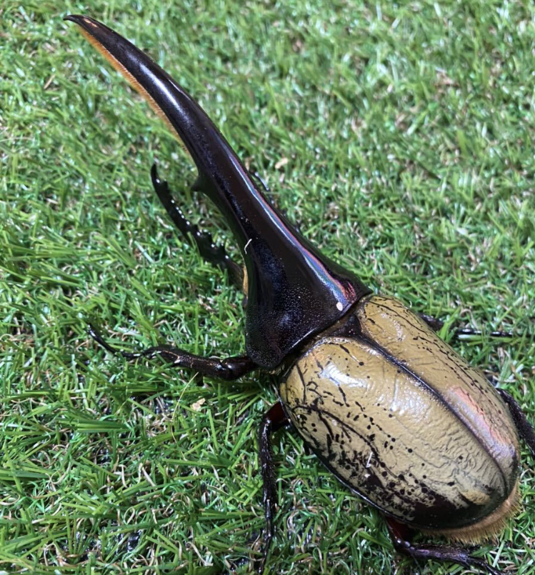 斑点が少ないグラントシロカブトくん。自力ハッチした元気そのままに餌を食い漁る…。美しい…